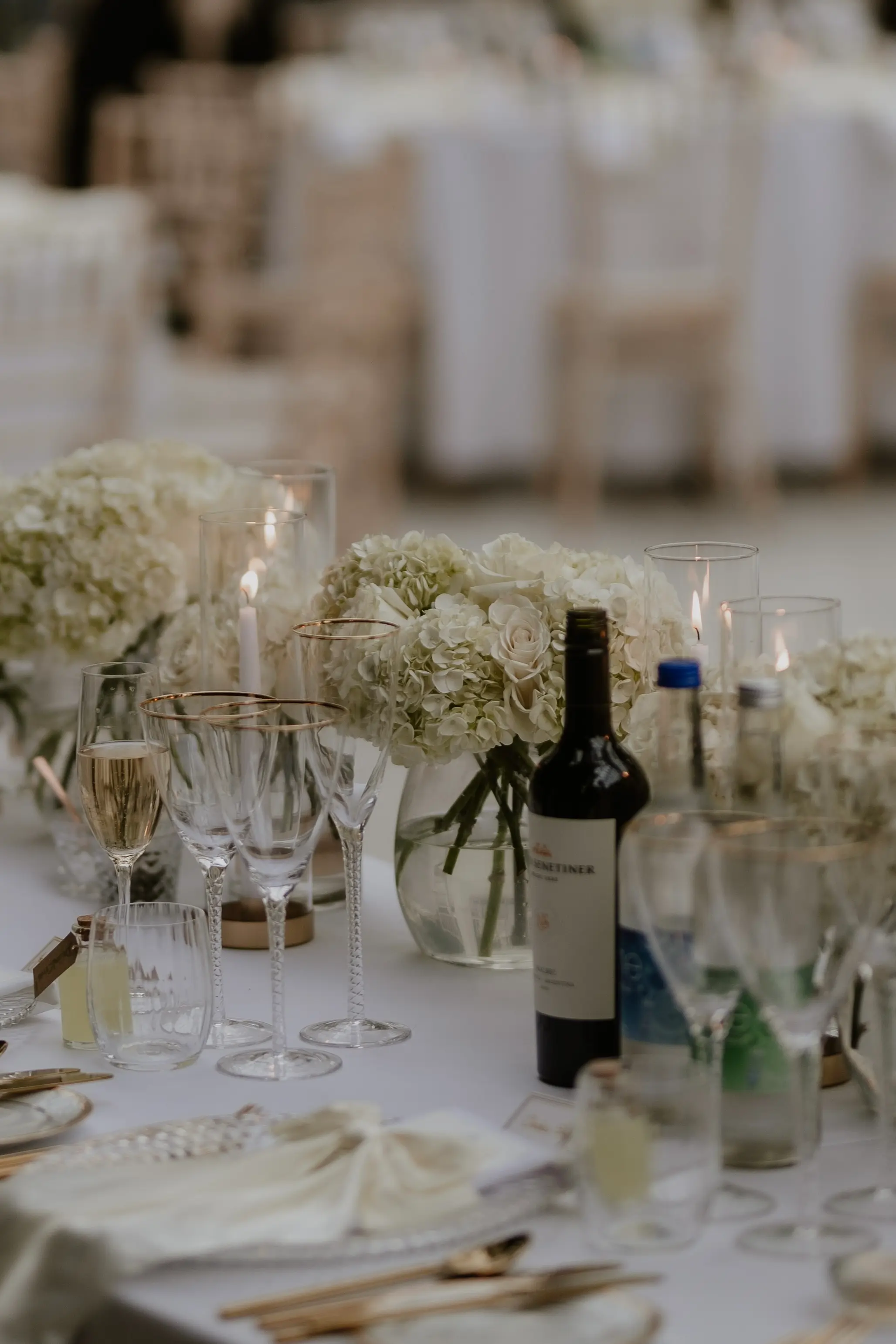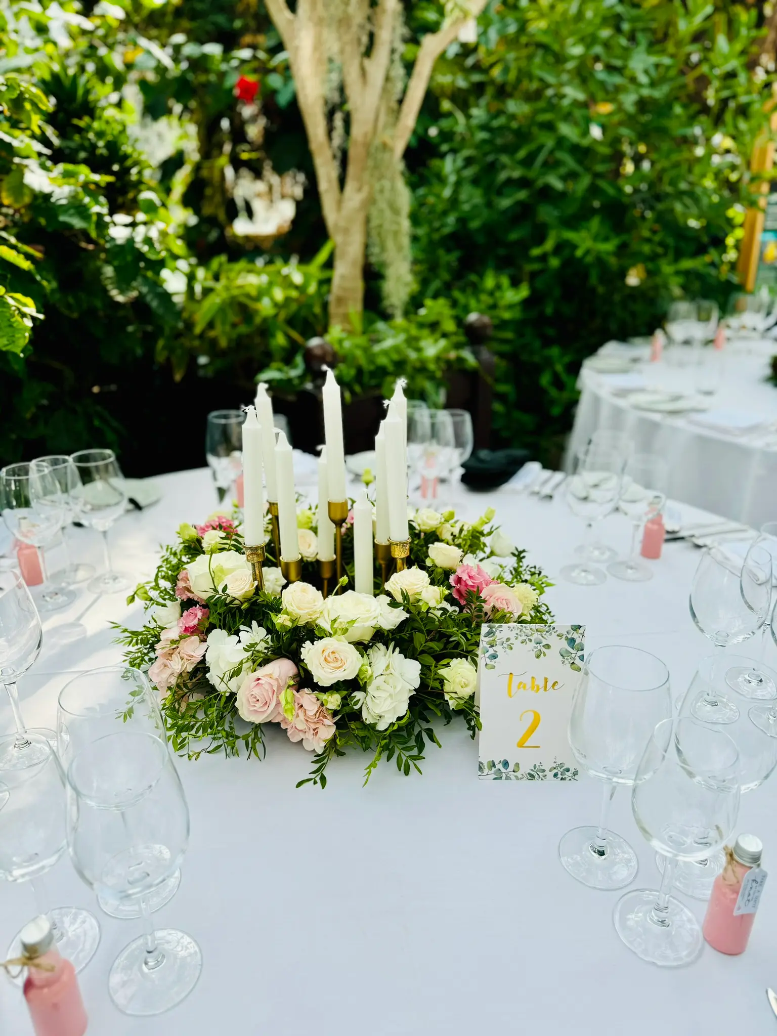 3. Low, Intimate Arrangements – Ideal for conversation-focused tables. These arrangements let the architecture shine while adding warmth and charm. You can mix in candle elements like tall tapered candles or clusters of tea lights for extra atmosphere.