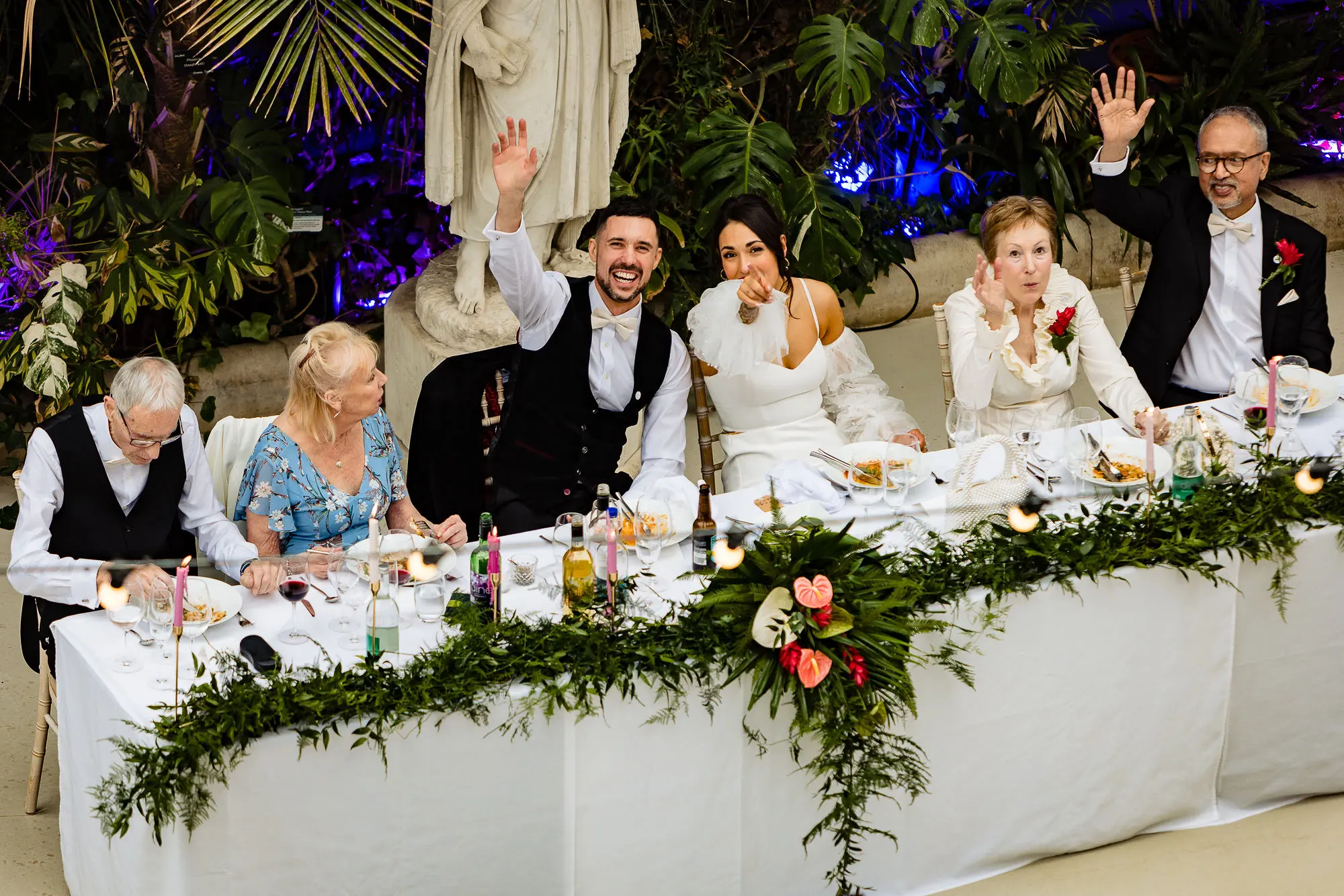 The Palm House is bursting with exotic plants year-round, which makes it perfect for wedding reception flower arrangements with bold, vibrant colours. Rich hibiscus reds, bright bougainvillea pinks, and pops of passion flower purple bring energy, playfulness, and tropical drama to your day. These shades harmonise with the lush greenery, giving your wedding reception a lively, vibrant, and fun atmosphere.