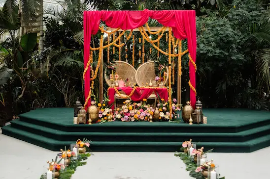 If your ceremony and reception are both at the Palm House, think about how your flowers can work harder for you. Move aisle flowers to the front of the top table or at the end of banquet tables, reposition statement pieces throughout the day to make focal areas within the Palm house..