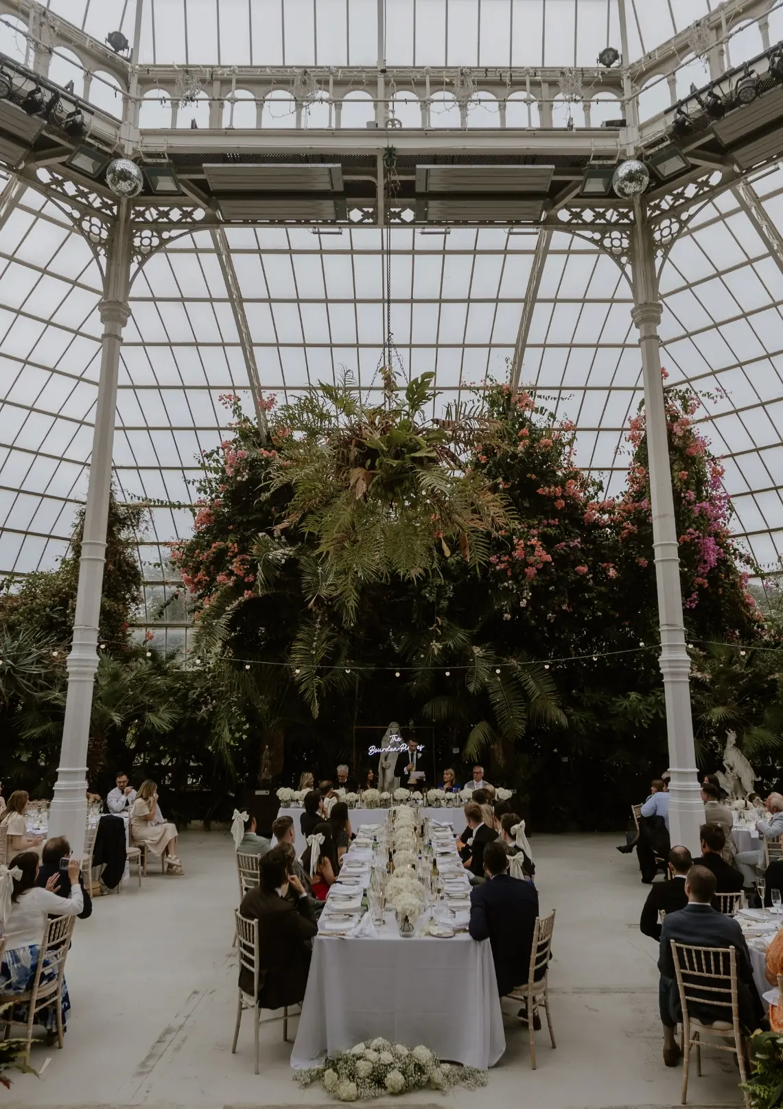 The Palm House is incredibly versatile when it comes to wedding receptions. Whether you’re planning round tables, long banquet tables, or a top table, the space works beautifully. Its open layout and light-filled glasshouse allow your flowers and styling to really shine, making it an ideal canvas for both bold and subtle floral visions.
